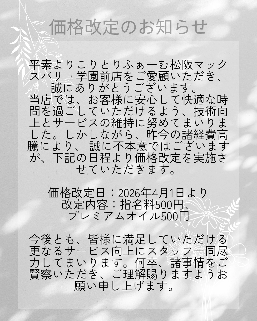 価格改定のお知らせ
