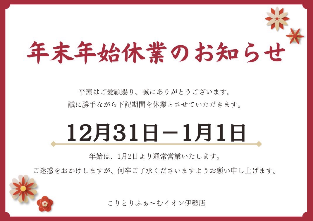 定休日のお知らせ